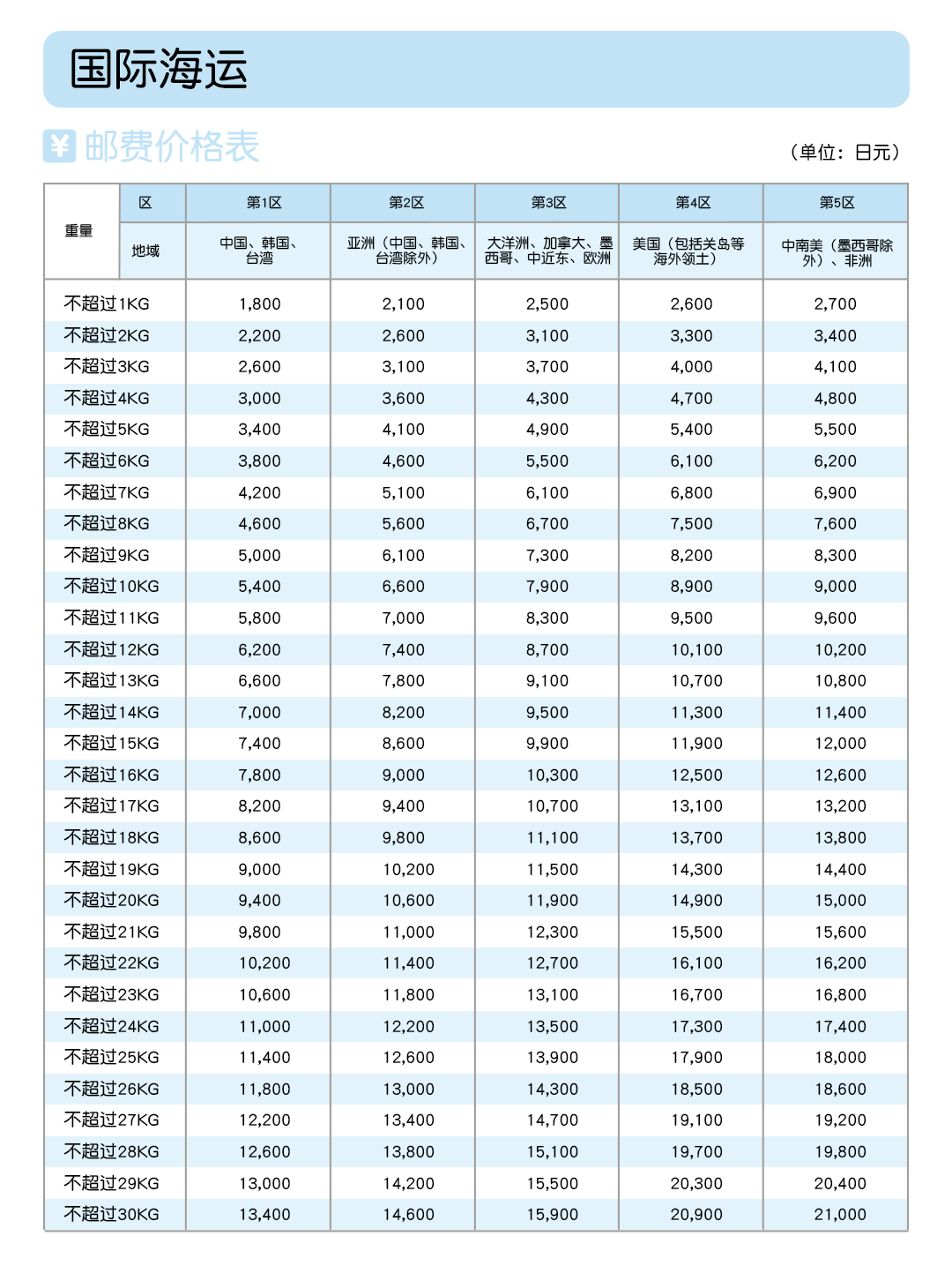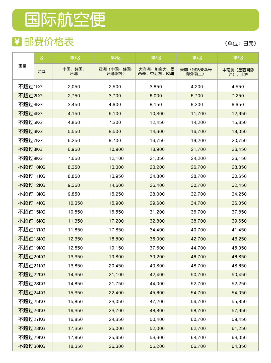 日本直邮运费同步日本邮政官网价格,